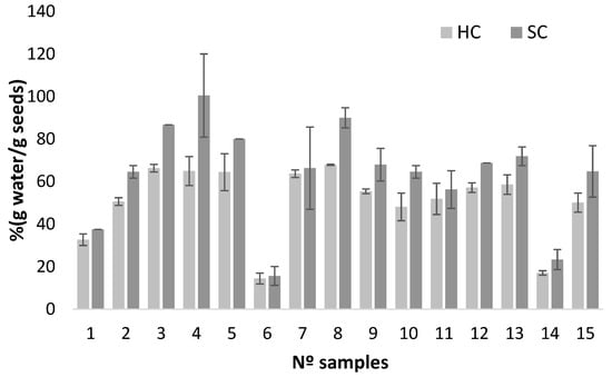 | Seed dimensions | Average of 10 seeds (mm): length (measured parallel to the hilum), width, and height (measured from hilum to opposite side) |