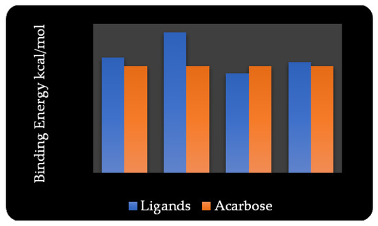 The comparative graph of binding energy of ligands and acarbose.