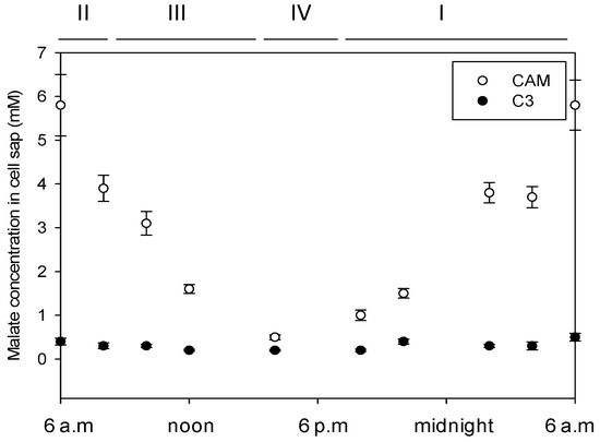 - Dodd, A.N.; Griffith, S.H.; Taybi, T.; Cushman, J.C.; Borland, A.M. Integrating diel starch metabolism with the circadian and environmental regulation of crassulacean acid metabolism in Mesembryanthemum crystallinum. Planta 2003, 216, 789–797. [Google Scholar] [CrossRef] [PubMed]