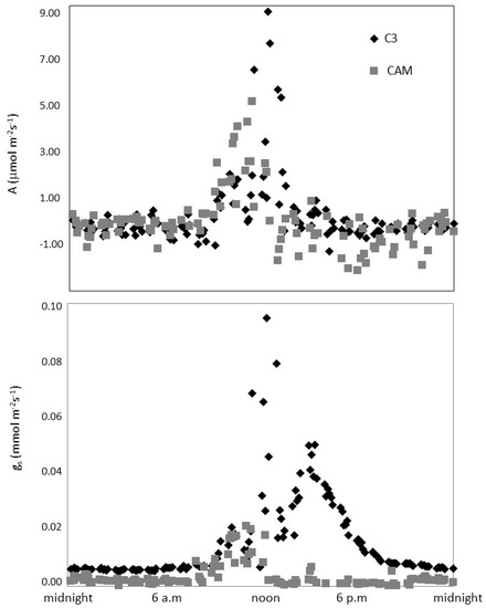 - Chu, C.; Dai, Z.; Ku, M.S.B.; Edwards, G. Induction of Crassulacean acid metabolism in the facultative halophyte Mesembryanthemum crystallinum by abscisic acid. Plant Physiol. 1990, 93, 1253–1260. [Google Scholar] [CrossRef] [Green Version]