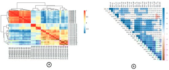 Finally, the pheatmap exhibited the variation when understudying the two taxa, where in the two S. leucophylla replicates the measured readings grouped together in separate clusters, showing divergence from the three S. schimperiana replicates, which revealed little divergence, meaning they collected from two places with little difference in altitude range Figure 4a. The correlogram correlation analysis exposed significant relationships among numerous traits (Figure 4b).