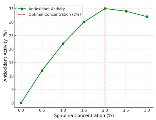 | Microalgae | Product | Concentration (%) | Antioxidant Activity (% DPPH Inhibition) (Mean ± SD) | Temperature (°C) | pH (Mean ± SD) | Duration |