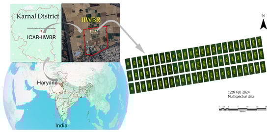Study area map of the wheat field, ICAR-Indian Institute of Wheat and Barley Research (IIWBR), Karnal District, Haryana, India.