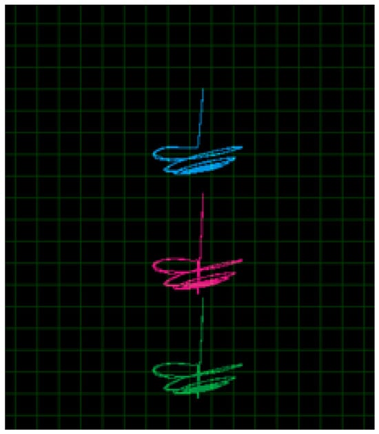 - Stratified Chaotic Attractors: The figure shows three distinct lobes (green, pink, and blue) arranged in a vertical manner, where each lobe represents a localized chaotic trajectory. This suggests that the system exhibits multi-stable or tiered chaotic dynamics, where different dynamic states coexist.