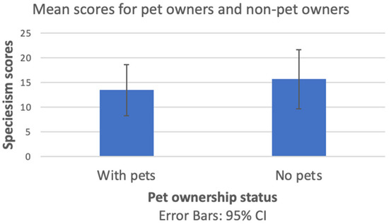 Mean scores of speciesism between the participants (pet owners vs. non-pet owners).