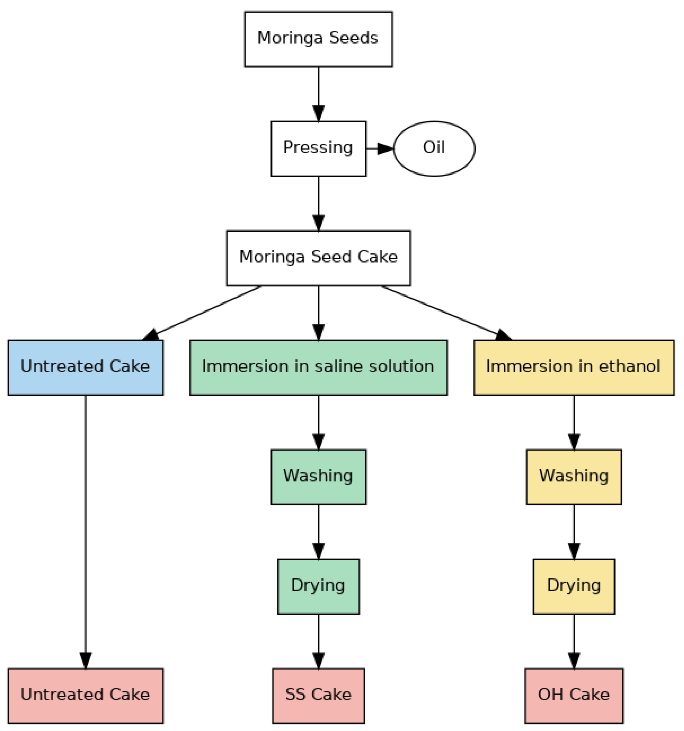 2.2.3. Physicochemical Treatments of Moringa Residual Cake After Oil Extraction