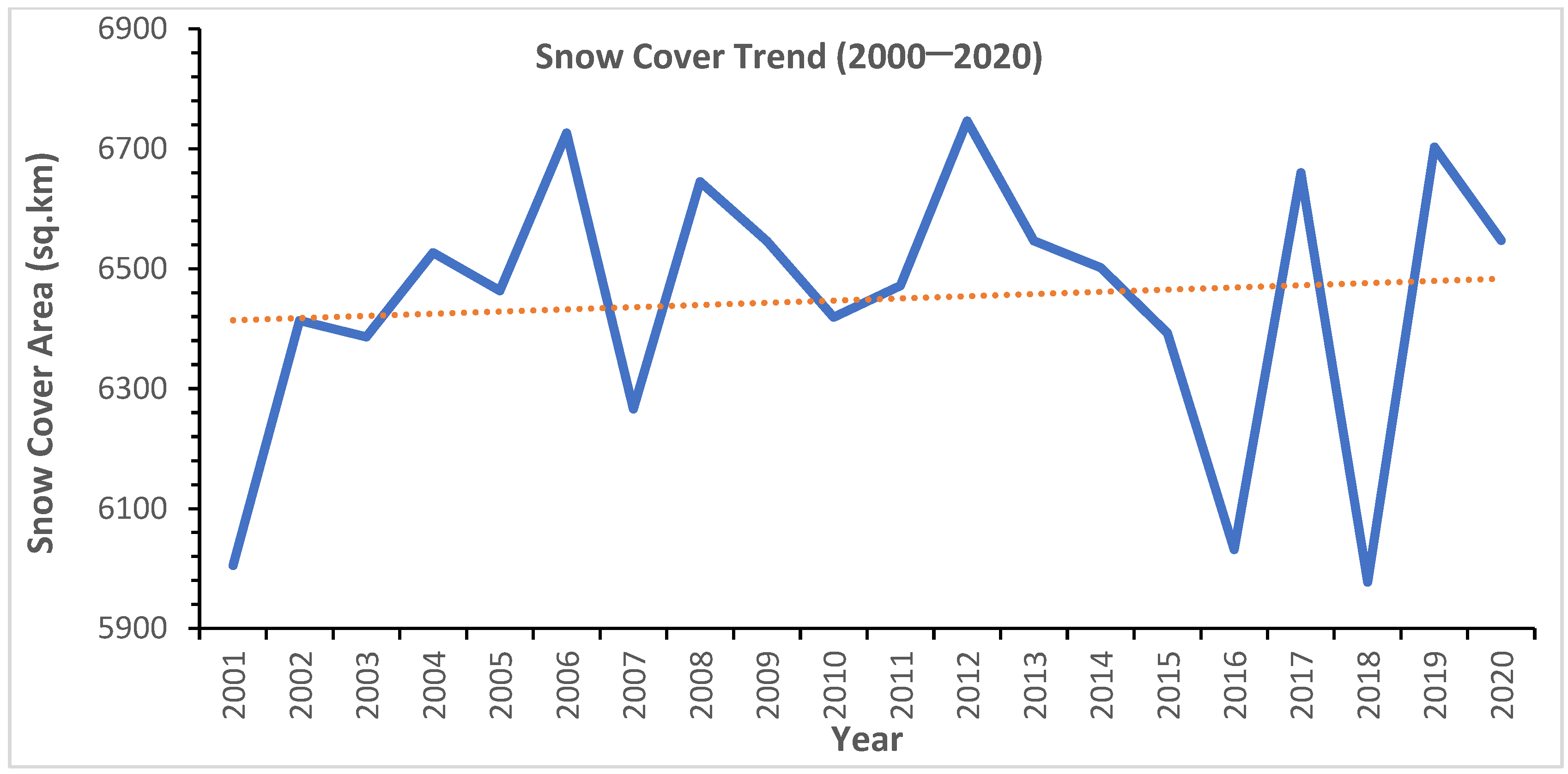 3.4. Trend of Snow Cover in the Winter Season (2000–2020)