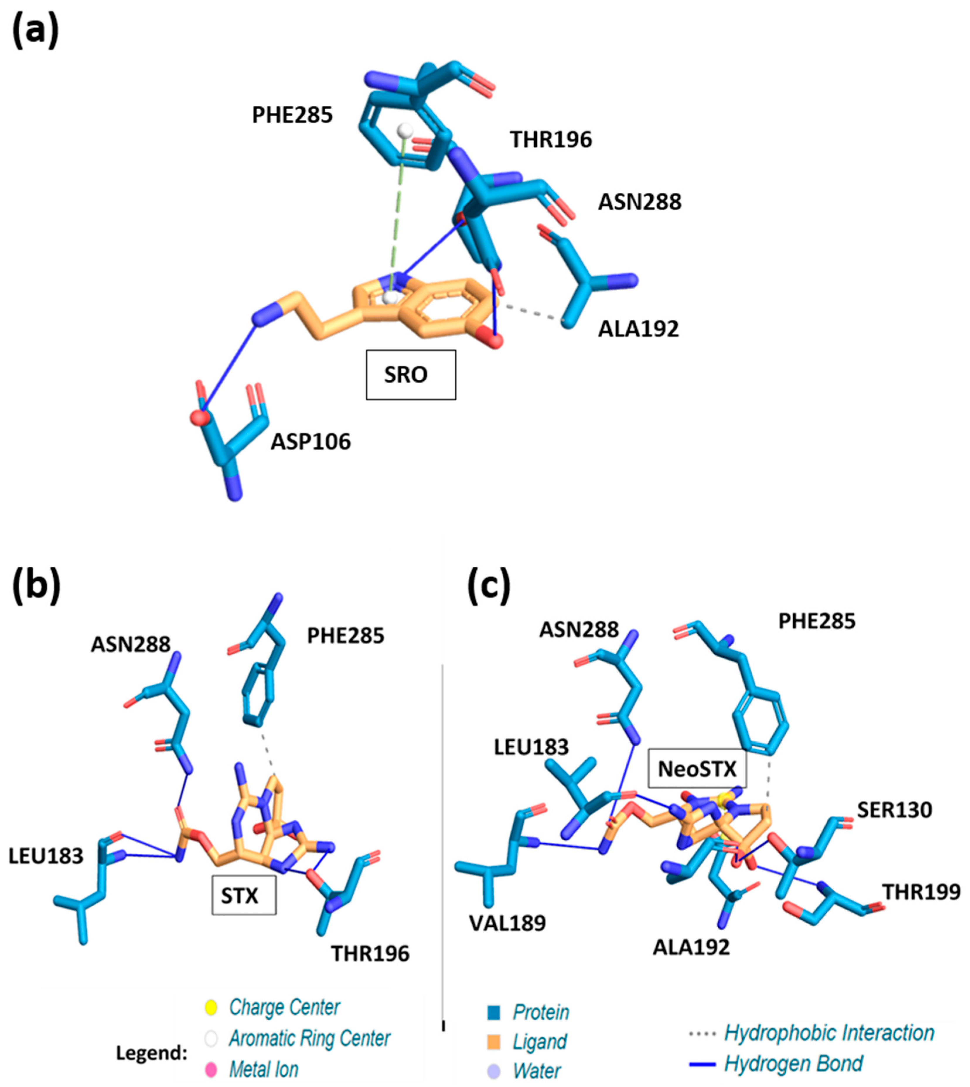 - Yen, T.J.; Lolicato, M.; Thomas-Tran, R.; Du Bois, J.; Minor, D.L., Jr. Structure of the saxiphilin:saxitoxin (STX) complex reveals a convergent molecular recognition strategy for paralytic toxins. Sci. Adv. 2019, 5, eaax2650. [Google Scholar] [CrossRef] [PubMed] [PubMed Central]