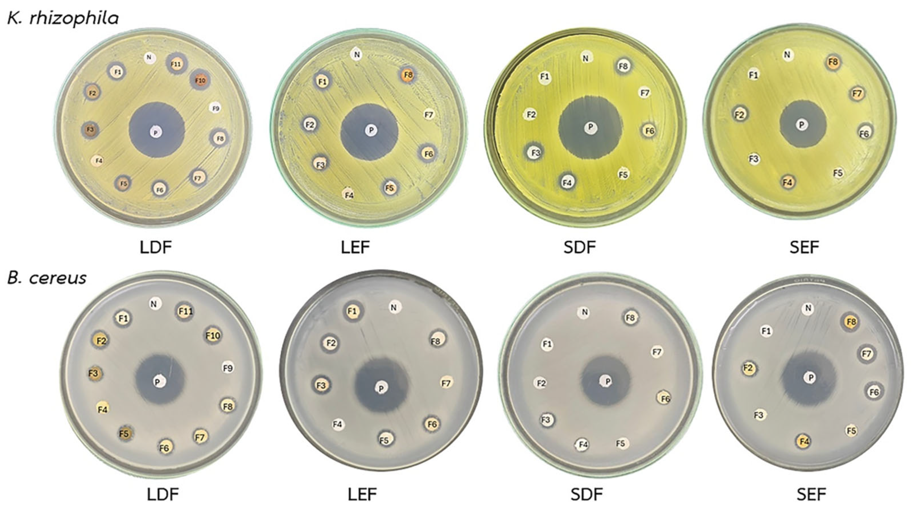 | Microorganisms | Kocuria rhizophila | Bacillus cereus | ||||||