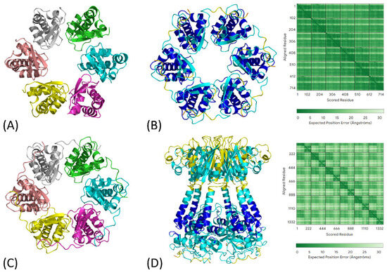 - Jumper, J.; Evans, R.; Pritzel, A.; Green, T.; Figurnov, M.; Ronneberger, O.; Tunyasuvunakool, K.; Bates, R.; Žídek, A.; Potapenko, A.; et al. Highly Accurate Protein Structure Prediction with AlphaFold. Nature 2021, 596, 583–589. [Google Scholar] [CrossRef]