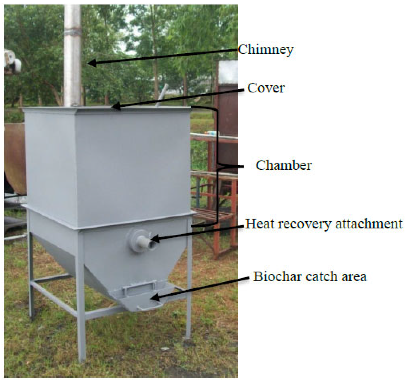 2.2. Preparation and Characterization of Rice Husk Biochar