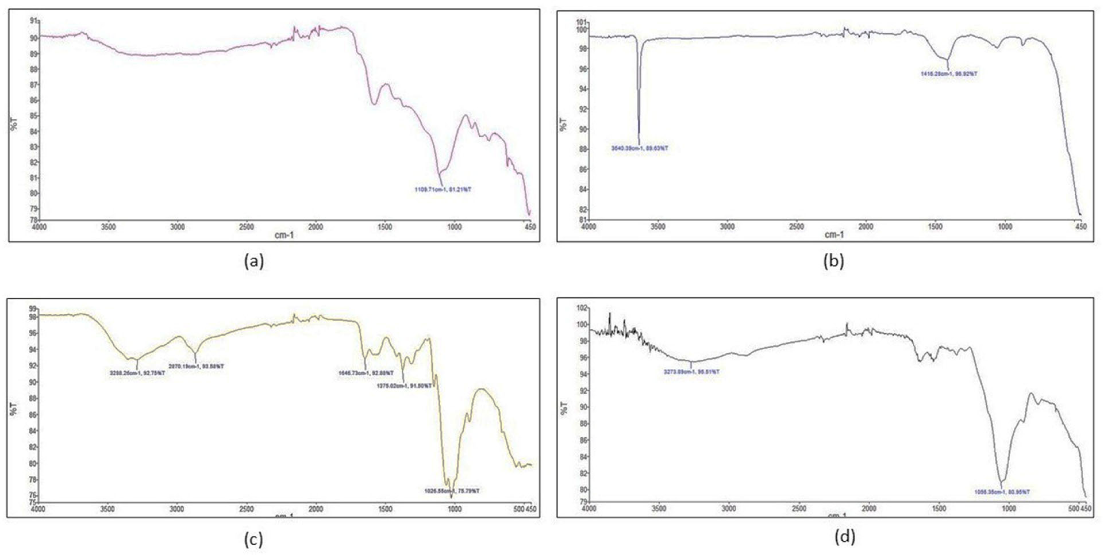2.3. Preparation and Characterization of Nano-Silica, -Calcium, -Chitosan and Its Nanocomposites