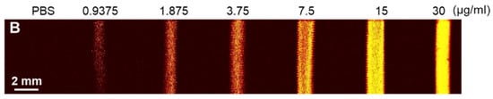 AuNSs were loaded into the PTFE tubes. The amplitude of the signal was increased when the AuNS concentration increased; meanwhile, the control tube with PBS did not show any PA signals (Figure 4). The PAI with AuNSs has potential for diagnosing and monitoring tumors.