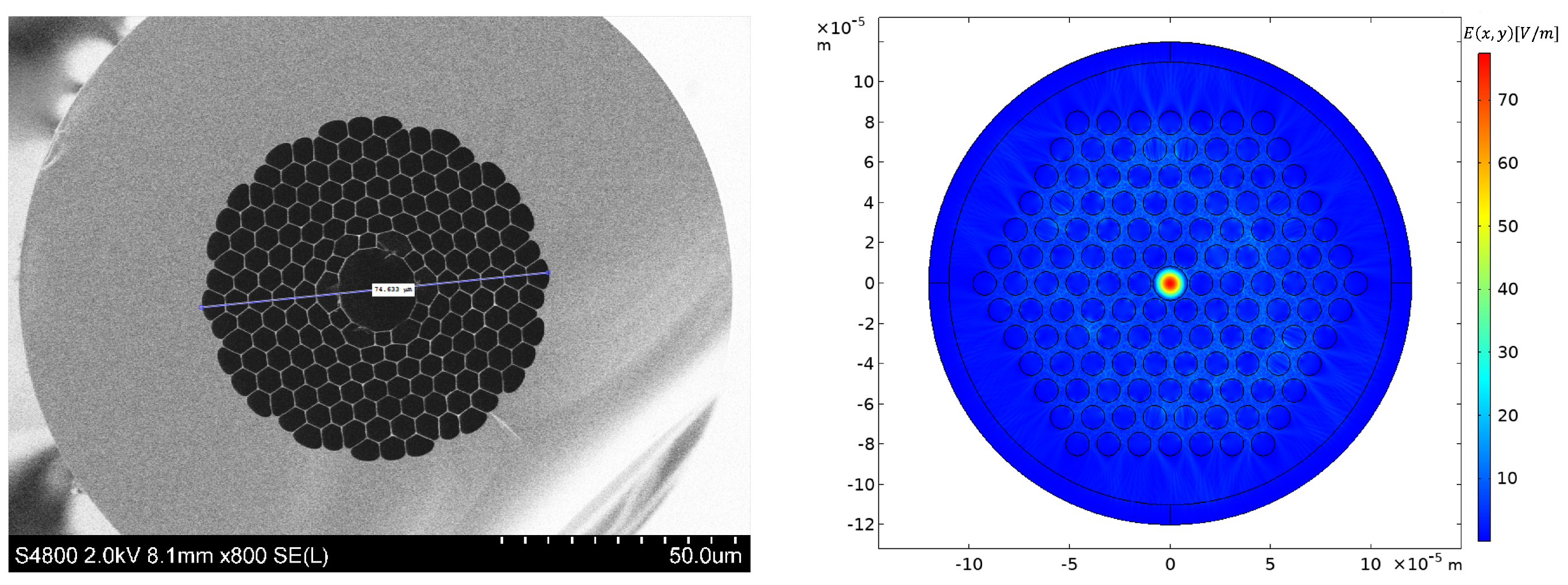 Figure 1 Right), taking into account its actual geometry with six rings of air-holes. This precise determination of