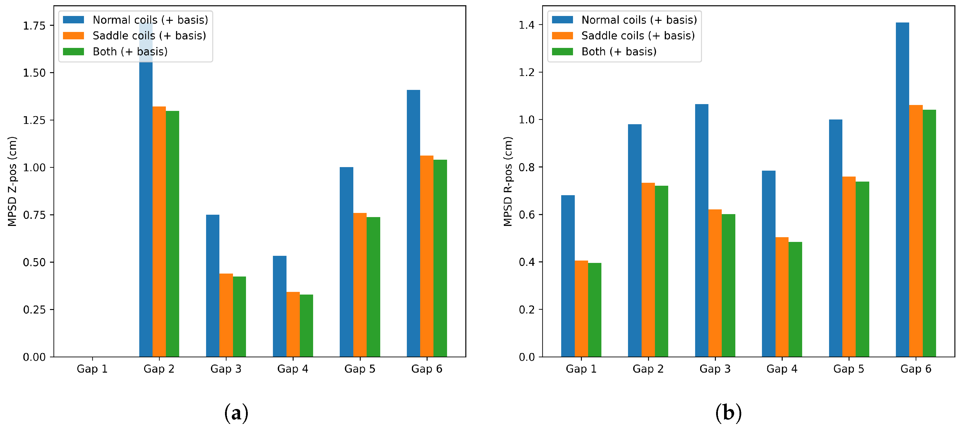 Table 2. Either normal coils, saddle coils, or both can be used. Implementing saddle coils instead of normal coils results in an improvement in both accuracy and precision. Employing both marginally improves the inference.