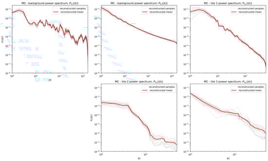 Comparison of the reconstructed power spectra between the initial model (M0) and the advanced, multi-component model (MC). In the latter, the background and the individual tile components exhibit different correlation properties.