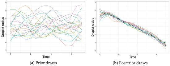 As shown in Figure 2a, this choice leads to functions that obey the 3–9 m restriction without becoming too restrictive as a consequence. In Figure 2b, we observe that the posterior draws resemble a linear model except on , due to the missing observation.