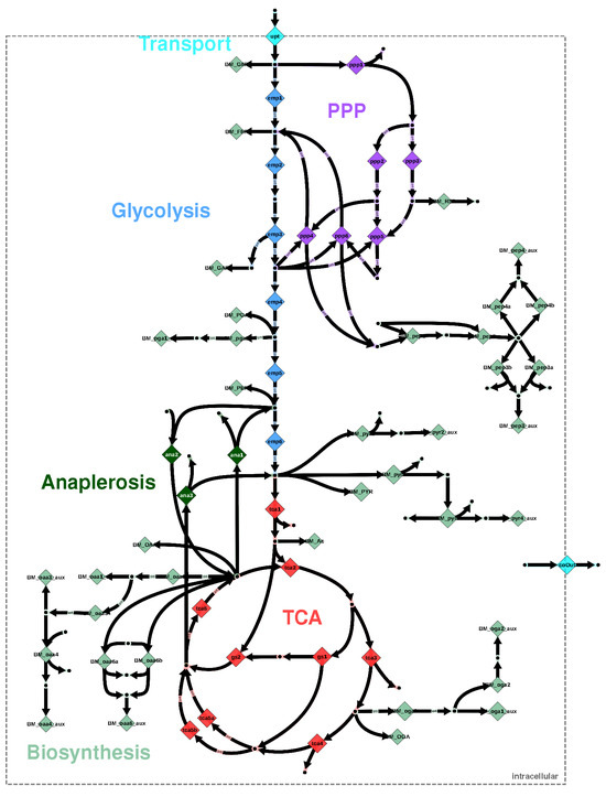 - Orth, J.D.; Thiele, I.; Palsson, B.Ø. What is flux balance analysis? Nat. Biotechnol. 2010, 28, 245–248. [Google Scholar] [CrossRef]