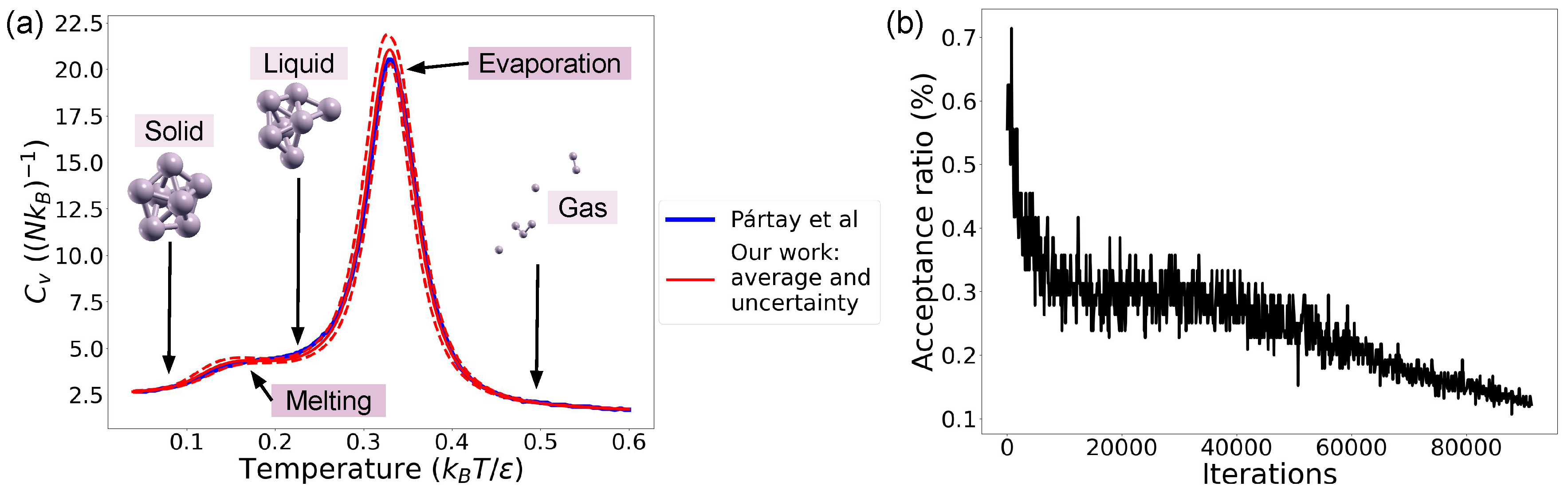 - Neirotti, J.P.; Calvo, F.; Freeman, D.L.; Doll, J.D. Phase changes in 38-atom Lennard-Jones clusters. I. A parallel tempering study in the canonical ensemble. J. Chem. Phys. 2000, 112, 10340–10349. [Google Scholar] [CrossRef]