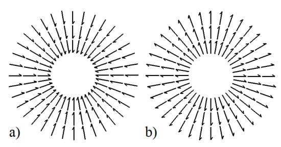 Figure 3, each vector corresponds to a null string (the vector determines the direction of motion of the null string, which is involved in the formation of the “thread”). Null strings that participate in the formation of a spherically symmetric domain are always located orthogonal to the direction of the corresponding vector [