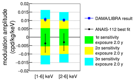 Figure 3 compares these results obtained from ANAIS-112 data for the modulation amplitude Sm to those obtained by DAMA/LIBRA [3]. In addition, the estimated sensitivity of ANAIS-112 at different confidence levels is depicted.