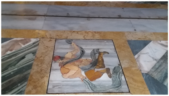 The author of the zodiacal signs was Francesco Tedeschi, who replicated the maps of Johannes Bayer (1703) with marble tarsie and brass star dimensioned according to their magnitudes. The zodiacal signs’ locations (see Figure 5 for the Aquarius tile) are computed according to the true obliquity ε of 1701.