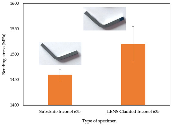 Comparison of the bending strength for the substrate Inconel 625 and LENS cladded Inconel 625.