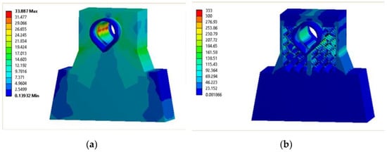 Stress analysis of demonstrators: (a) solid die; (b) lattice structured die.