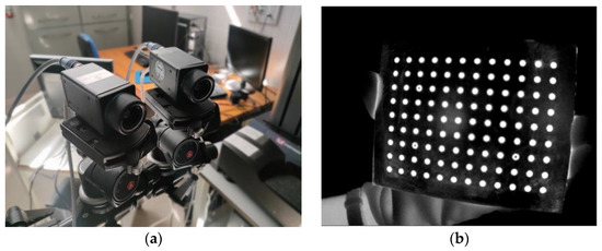 (a) Camera set up for 3D-DIC. (b) Thermal image of calibration plates.