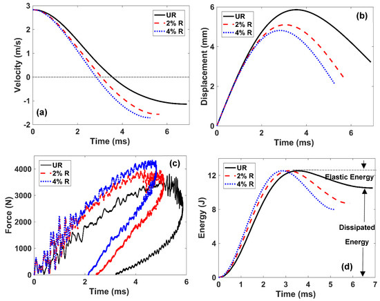 In the above equations, the parameters with the subscript ‘0’ represent the initial values, while time t = 0 represents when the impactor tip touches the specimen. All the integrants were calculated using Simpson’s 1/3rd integration rule.