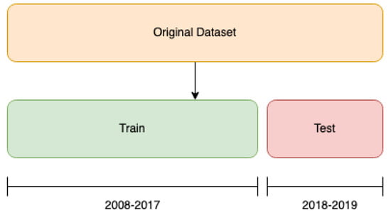 To assess the performance of both proposed models, we split the dataset into two different parts: the training set contained the score, and thus the rating, of companies during the period 2008–2017; the rest of the dataset, the test set, was composed of the rating of the same companies scored by Tinubu during the period 2018–2019 (see Figure 2).