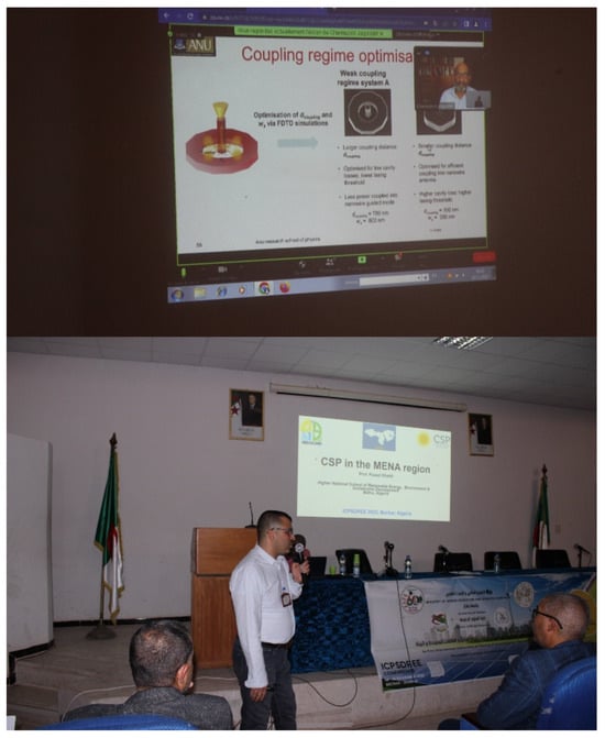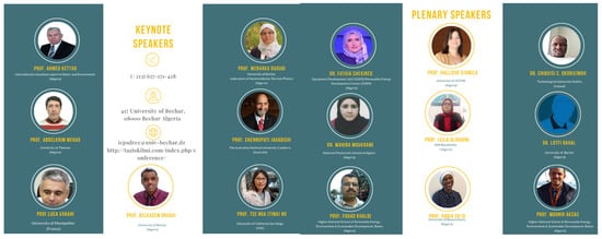 The University of Bechar, Algeria, held an international conference on physics, renewable energies, and environment (ICPSDREE) from 14 to 16 November 2022. Professors and researchers from various countries attended ICPSDREE 2022, both virtually and in-person. The conference included four regular sessions and one special session, which were organized as follows: physics of semiconductor devices; renewable energies; environment; heat flow and matter transfer (Figure 1).
