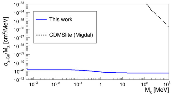 In Figure 4, the upper limits of the total nuclear scattering cross section ( 76Ge) obtained in this analysis of the Gerda Phase-I golden data set are compared with the current upper limit on the DM–Ge nucleus scattering obtained by considering the “Migdal effect” in the CDMSlite experiment [18]. Despite a deeper comparison being required to detail the –nucleus interaction model, the proposed approach could be very effective for the direct detection of a light fermion DM candidate by using the existing or future neutrinoless double beta decay experiments.
