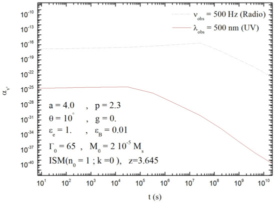 Figure 5. Evolution of absorption coeffcient for radio frequency and UV frequency (for Feng model).