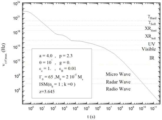 - Sari, R.; Piran, T.; Narayan, R. Spectra and light curves of gamma-ray burst afterglows. Astrophys. J. Lett. 1998, 497, L17–L20. [Google Scholar] [CrossRef]
