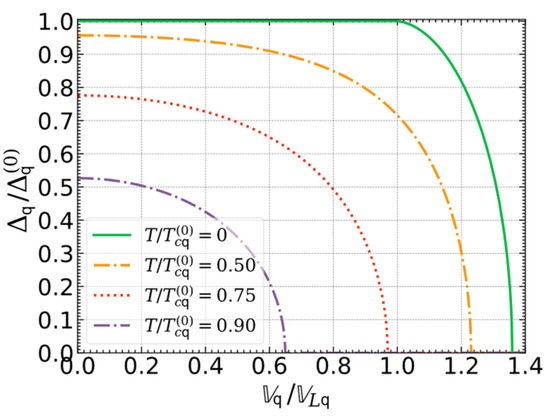 We have previously studied the nuclear superfluidity at finite temperatures and in the presence of superflows under the self-consistent time-dependent nuclear energy density functional framework [15,16]. The behavior of the order parameter (with for neutron and proton, respectively) was found to be universal after introducing some effective superfluid velocities and proper rescaling (see Figure 1): is the order parameter at zero temperature in the absence of superflows, is the critical temperature above which superfluidity is destroyed and (with , the Fermi wave vector) is Landau’s velocity (derived via the eponymous criterion [19,20] adapted to the context of strongly interacting nuclear superfluid mixtures).