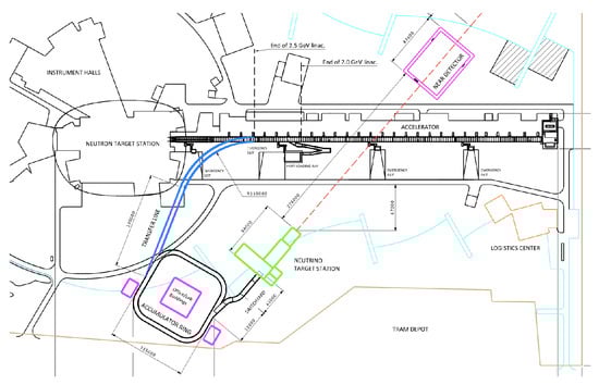 - Garoby, R.; Vergara, A.; Danared, H.; Alonso, I.; Bargallo, E.; Cheymol, B.; Darve, C.; Eshraqi, M.; Hassanzadegan, H.; Jansson, A.; et al. The European Spallation Source Design. Phys. Scr. 2018, 93, 014001. [Google Scholar] [CrossRef]