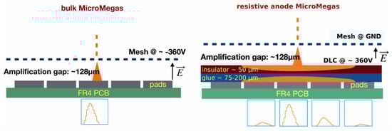 Section of a bulk Micromegas (left) compared to a ERAM sensor (right) [].