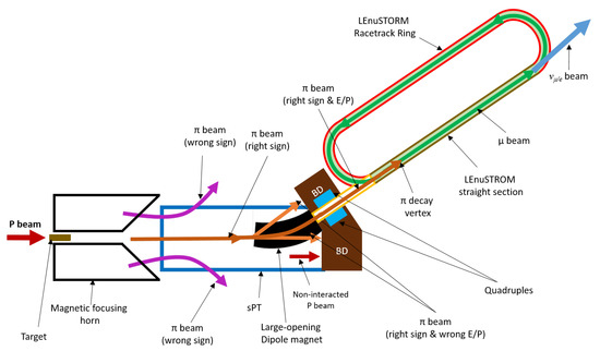 - Long, K. The nuSTORM experiment. J. Phys. Conf. Ser. 2018, 1056, 012033. [Google Scholar] [CrossRef]