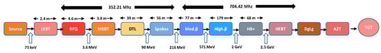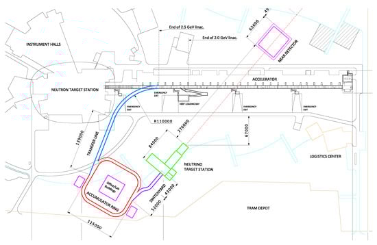 - Gerigk, F.; Montesinos, E. Required modifications of the ESS accelerator architecture for ESSnuSB. CERN-ACC-NOTE-2016-0050, July 2016. Available online: https://cds.cern.ch/record/2197632?ln=en (accessed on 19 October 2023).