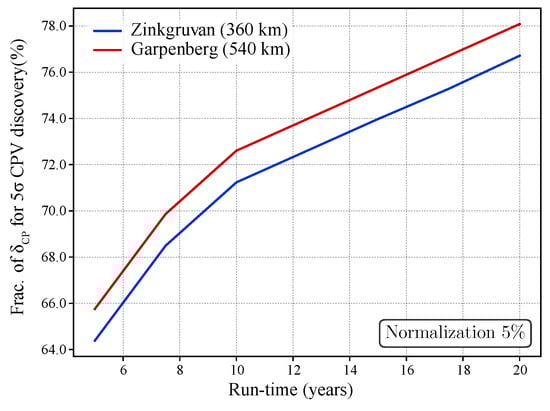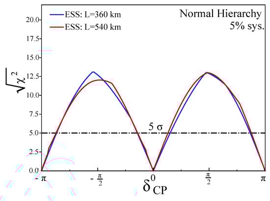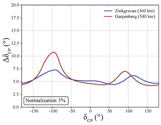 After discovering CP violation, the next important step will be the precise measurement of . This, on top of the fact that it will help to make unitarity tests of the PMNS matrix, it would also enormously help to disregard models based on flavour symmetries predicting the value (e.g., [10,11]). Figure 11 shows the expected precision on versus . It can be seen that for the Zinkgruvan mine, for all values of , remains below 7.5.