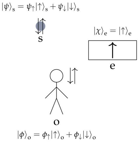 In order for the measurement procedure to be unitary, it is required that the information in the observer (Equation (2)) be transferred to another system so that the no-deletion theorem [6] is not violated. It is therefore required to consider a (large enough) third system into which the observer’s prior state can be dumped. We call this the environment and consider for its state