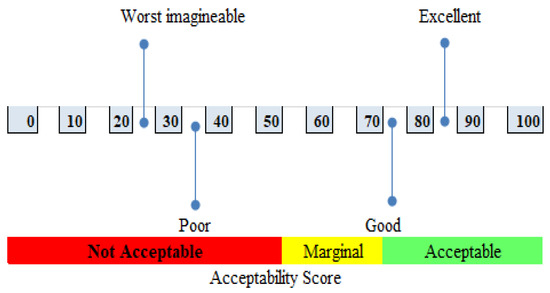 The final SUS score was 73.96, which indicates good usability on the basis of the above results. According to the SUS score scale [105], a SUS value of 73.96 is regarded as a good usability rating as shown in Figure 2 below.