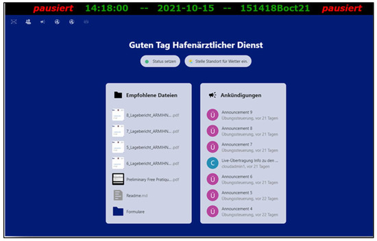 On the first day, all activities were carried out using the digital exercise platform, which was specifically developed for the ARMIHN exercises (Figure 1). On the second day, there was the additional presence of exercise parts in a cruise terminal in the port of Hamburg.