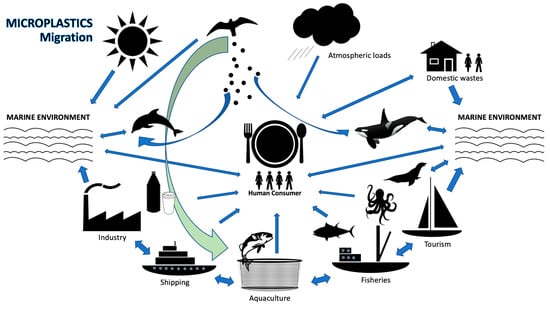 To control MPs pollution, it is important to detect and analyze the MPs that currently contaminate these areas. Therefore, when detecting MPs in aquaculture environments, it is necessary to clarify the sources and fates of MPs within them [8]. In order to better evaluate the quality and safety of aquaculture products and to control the input of MPs in aquaculture environments and promote the sustainable and healthy development of aquaculture, clarification regarding the relationship between MPs, aquaculture products and their potentially detrimental impacts on human and ecological health is needed.
