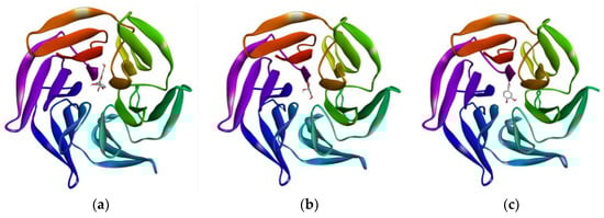 The docking results shown in Figure 2 were studied through Biovia discovery studio software to give a two-dimensional and three-dimensional view shown in Figure 3 of the interactions between the ligands and the residues of the binding site of the protein molecule. The estimated free binding energy (kcal/mol) was derived from the Vina result, based on which the estimated inhibition constant (Ki) (µM) was calculated using the above equation, i.e., Ki = exp(ΔG/RT).