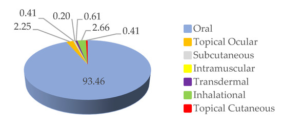 More than 93% of the drugs were administered via the oral route (Figure 1).