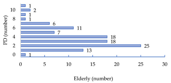 Number of photosensitizing drugs (PD) taken by the elderly.