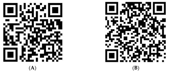 (A) Scan the QR code to access the survey on eco-anxiety in English; (B) Scan the QR code to access the survey on eco-anxiety in Spanish.