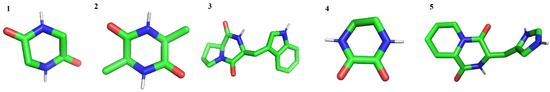 | 4 | Diketopiperazine | −2.95 | 2 | 114.10 | −1.1100 | 0 |